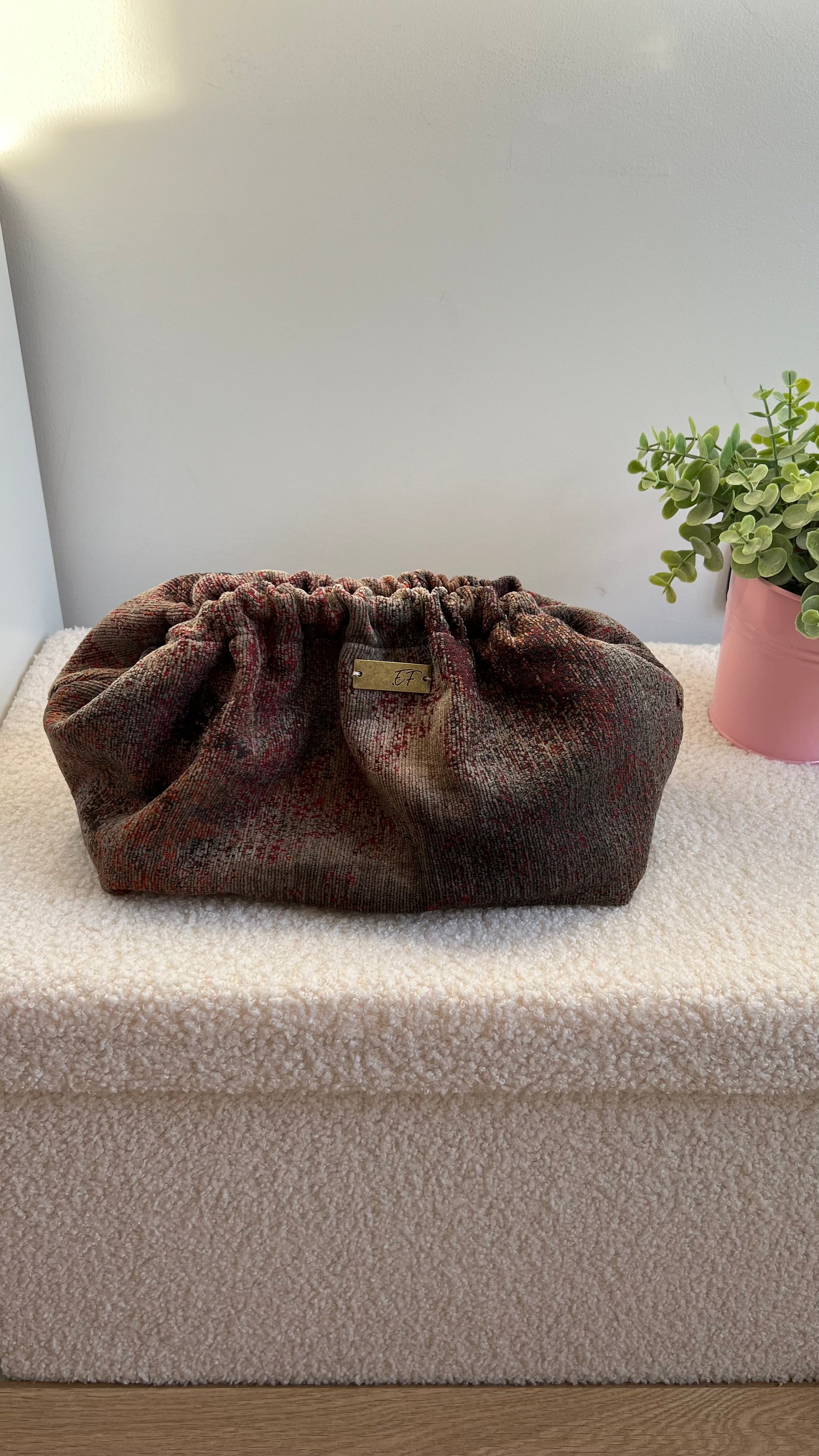 Misure Pouch Grande: larghezza 35 cm, profondità 22 cm, altezza 19 cm, apertura 24x14 cm