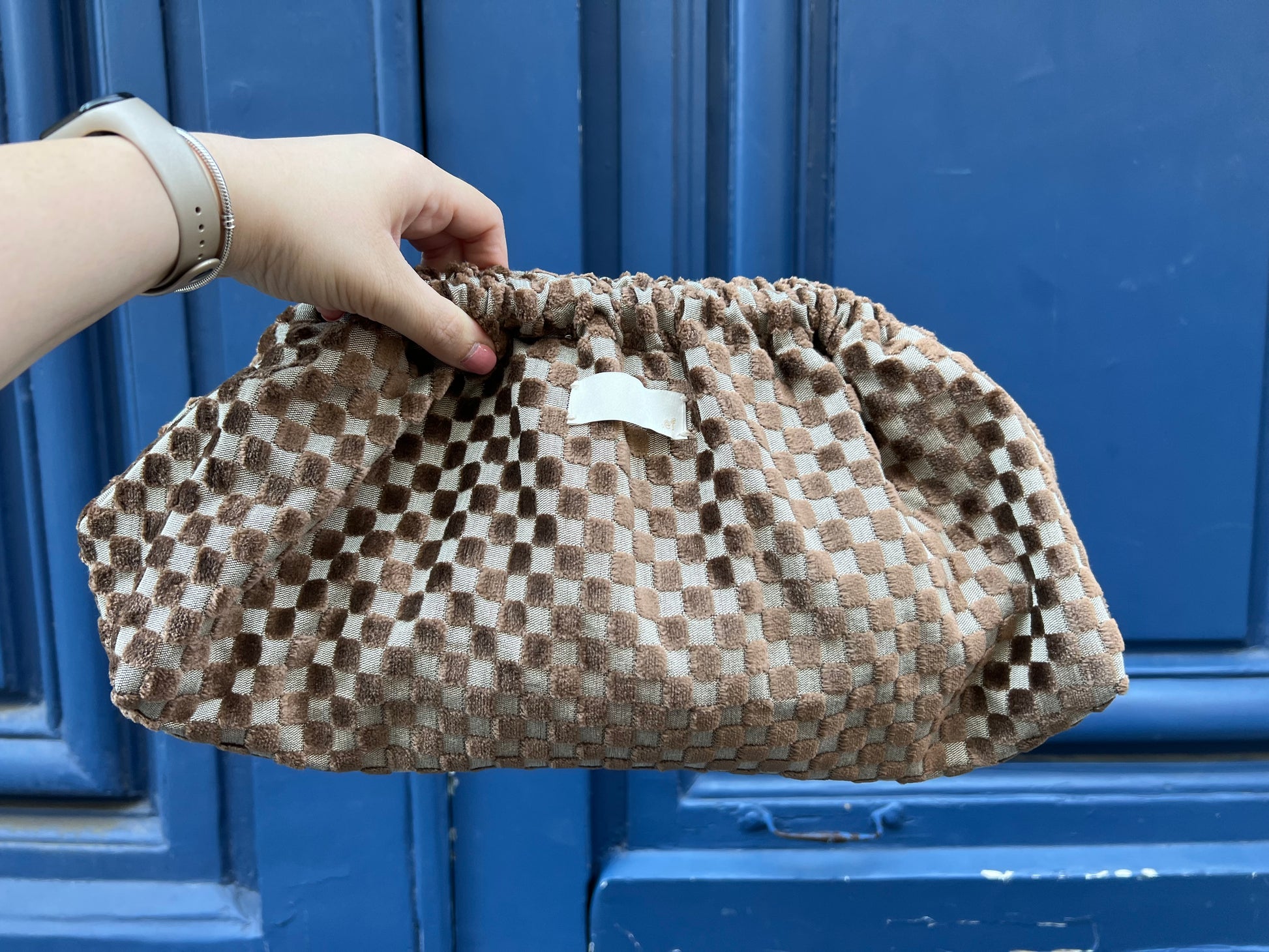 Misure Pouch Grande: larghezza 35 cm, profondità 22 cm, altezza 19 cm, apertura 24x14 cm